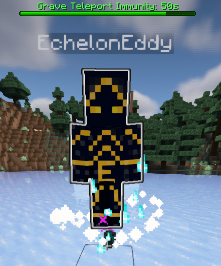 Before there was always question on how long your grave will last as I always forgot to properly update this however, you can now expect this to last for a full 6 hours. When teleporting to your grave or walking/flying to your grave, you will see a changed "Echo" which is just a static NPC of your skin with particles around and your name as the name tag. Right click this NPC to retrieve all your items. (You will receive a 60 second immunity timer when using the teleport feature as a added bonus to the cost of Echelites.) Misc changes